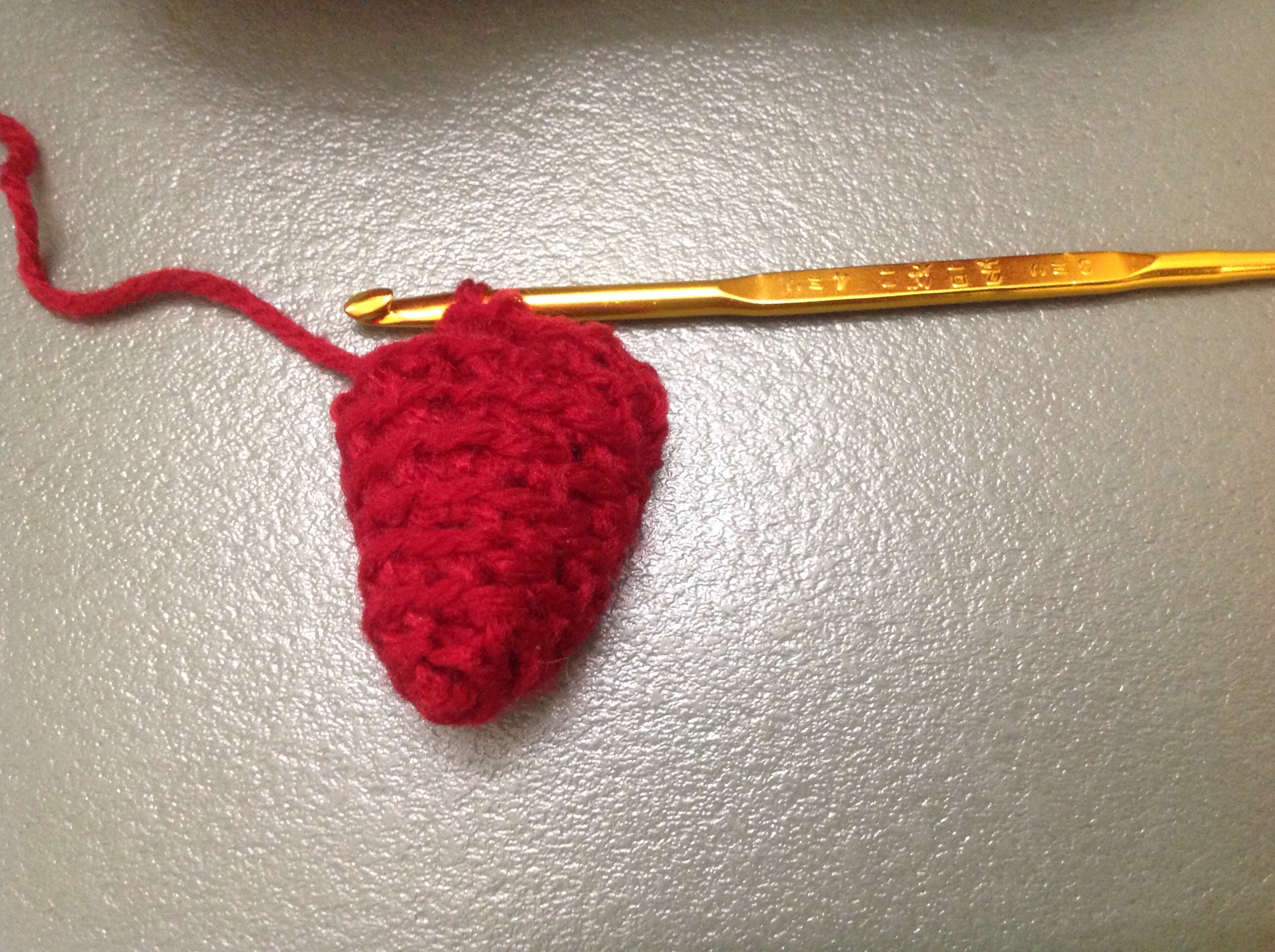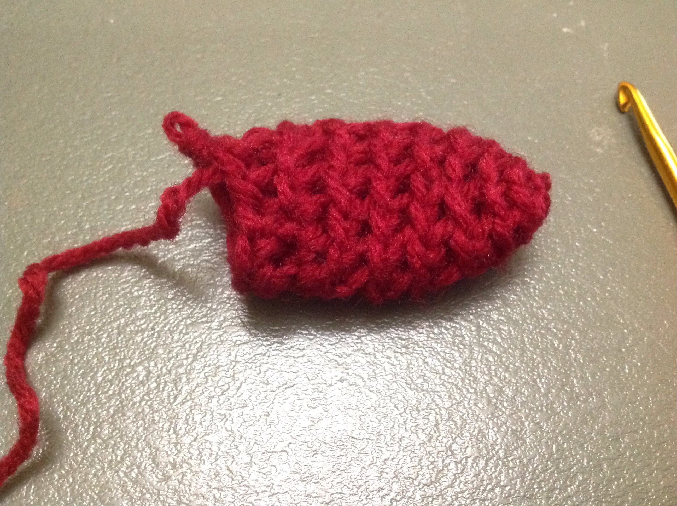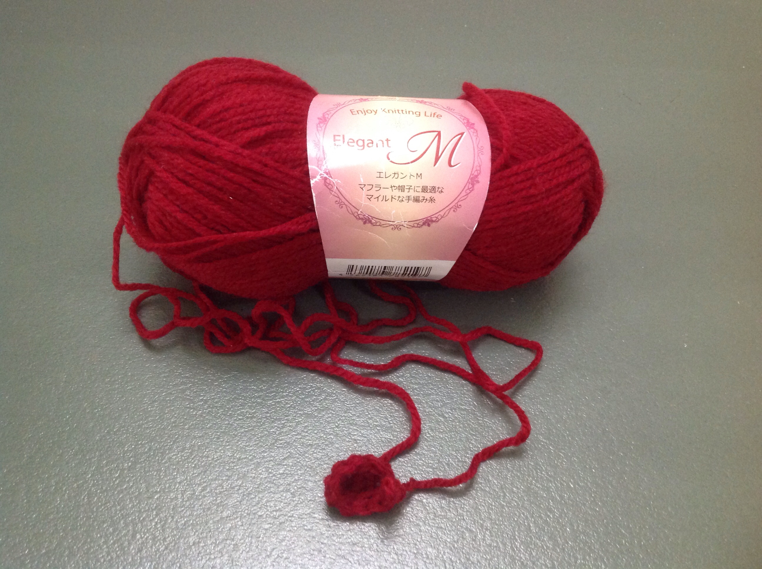 暇つぶしに、編み物セットを持って来た。今まで、棒編みはしたことがあるが、かぎ編みは、全く初めて。来る前に、急遽母に教えてもらったが、、