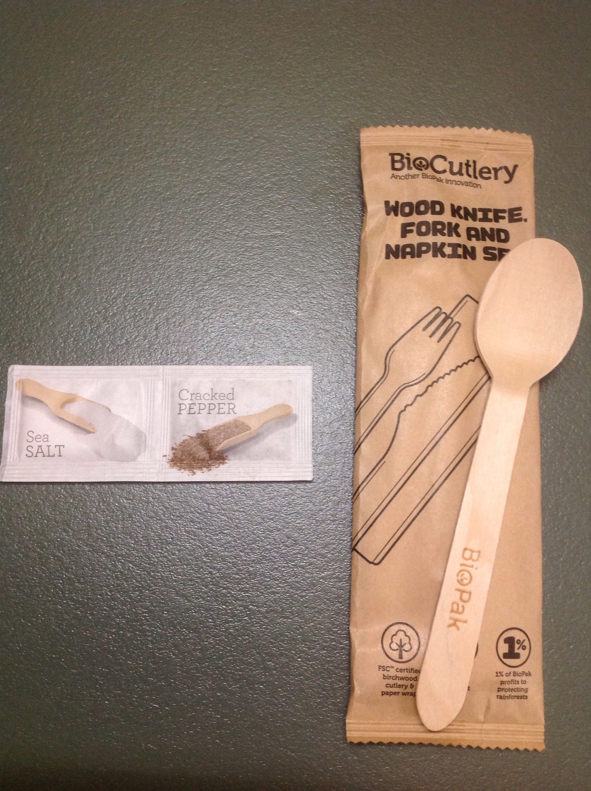 そうそう、フォークとナイフは、毎回木製の使い捨てのものが一緒にやって来る。ちょっと食べにくい。それにニュージーランド製だったらいいのだが、中国製。