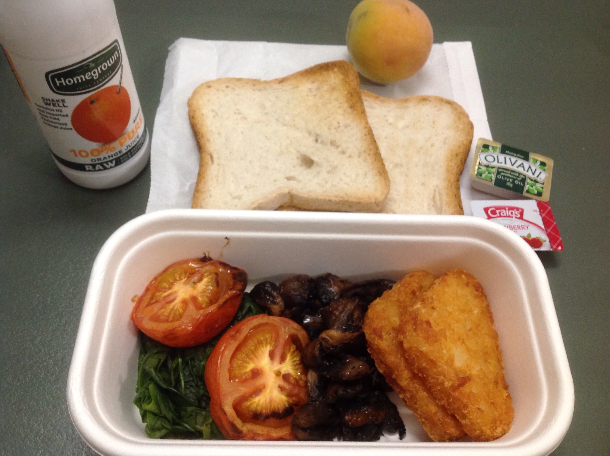 8時15分ぐらいに朝食到着。普通食の方とは全然違ったようだ。ほうれん草、マッシュルーム、美味しかった。食パン二枚って、多いなって思ったけど、全部きれいに頂きました。Food lossありません。