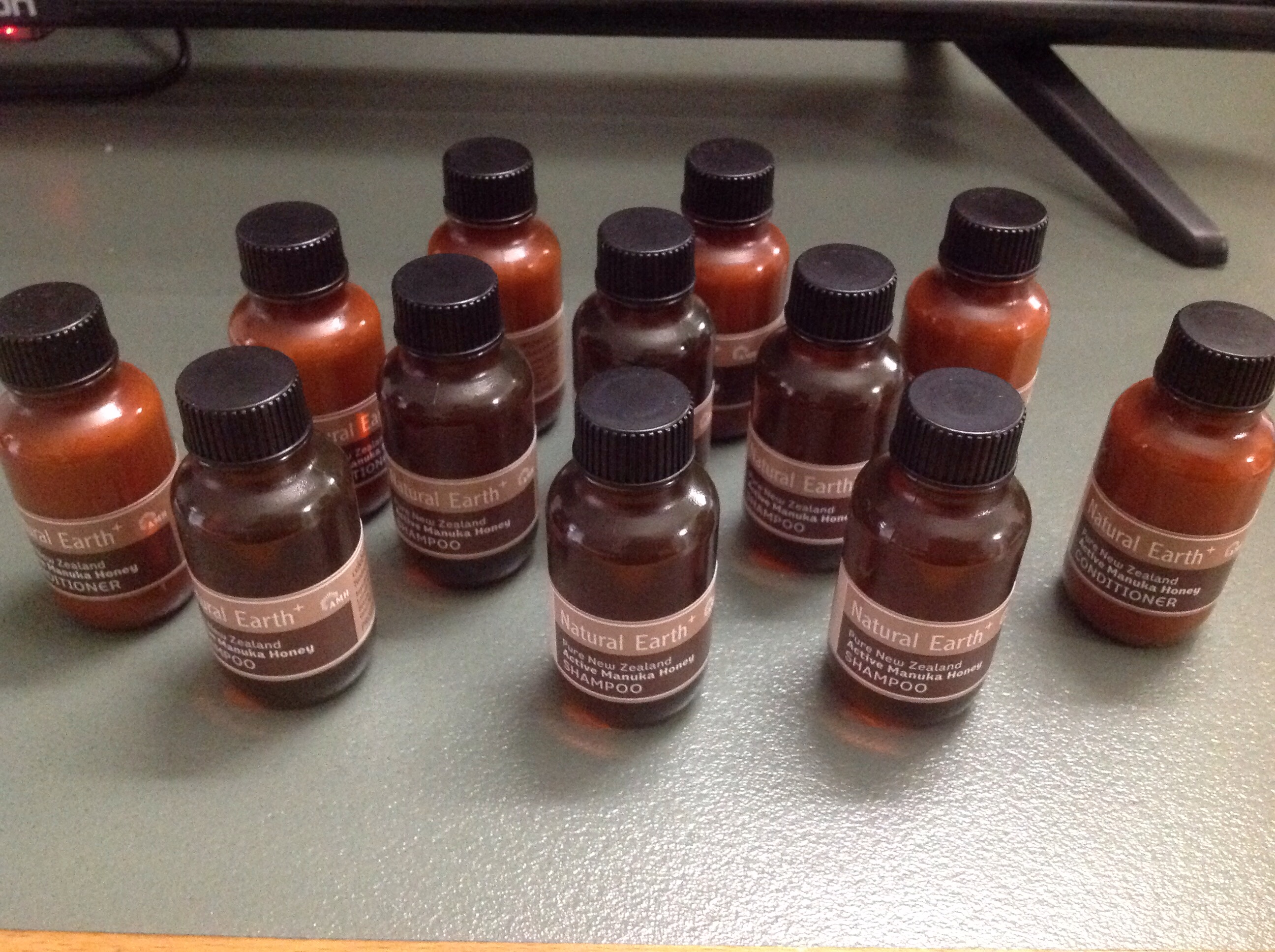 シャンプーとコンディショナーがなくなってきたので、フロントに電話して頼んだら、こんなにたくさん来た。ははは