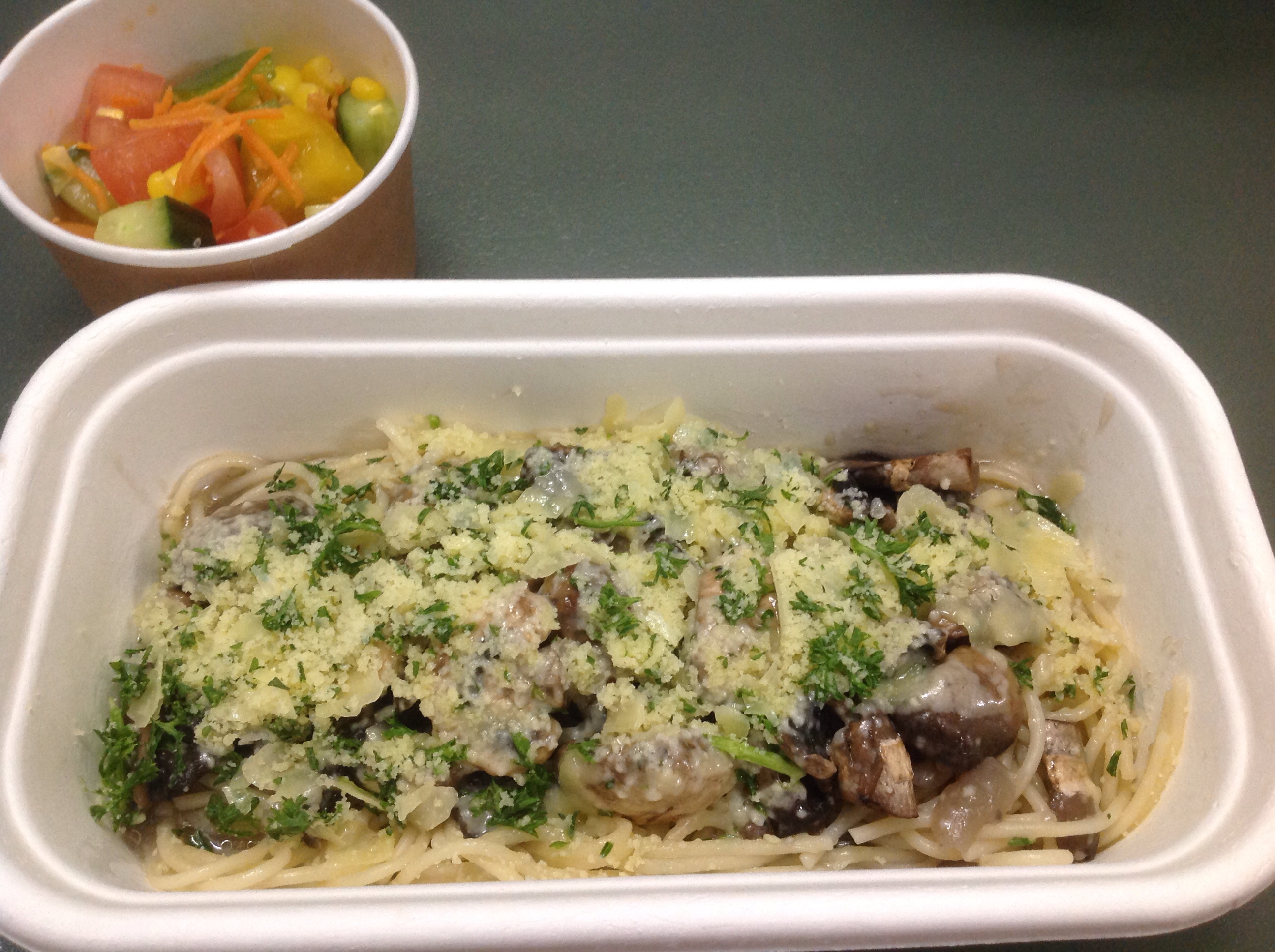 お昼。あれ?Sweet & Sour fish with stir egg noodlesを注文したと思ったけど、、魚はどこ?卵抜きは難しかったのかな。もう一つのメニューが、Potato Gnocchi with mushroom sauce & garlic breadだったので、2つ合わせて作って頂いたみたい。ありがとうございます。おいしかったです。
