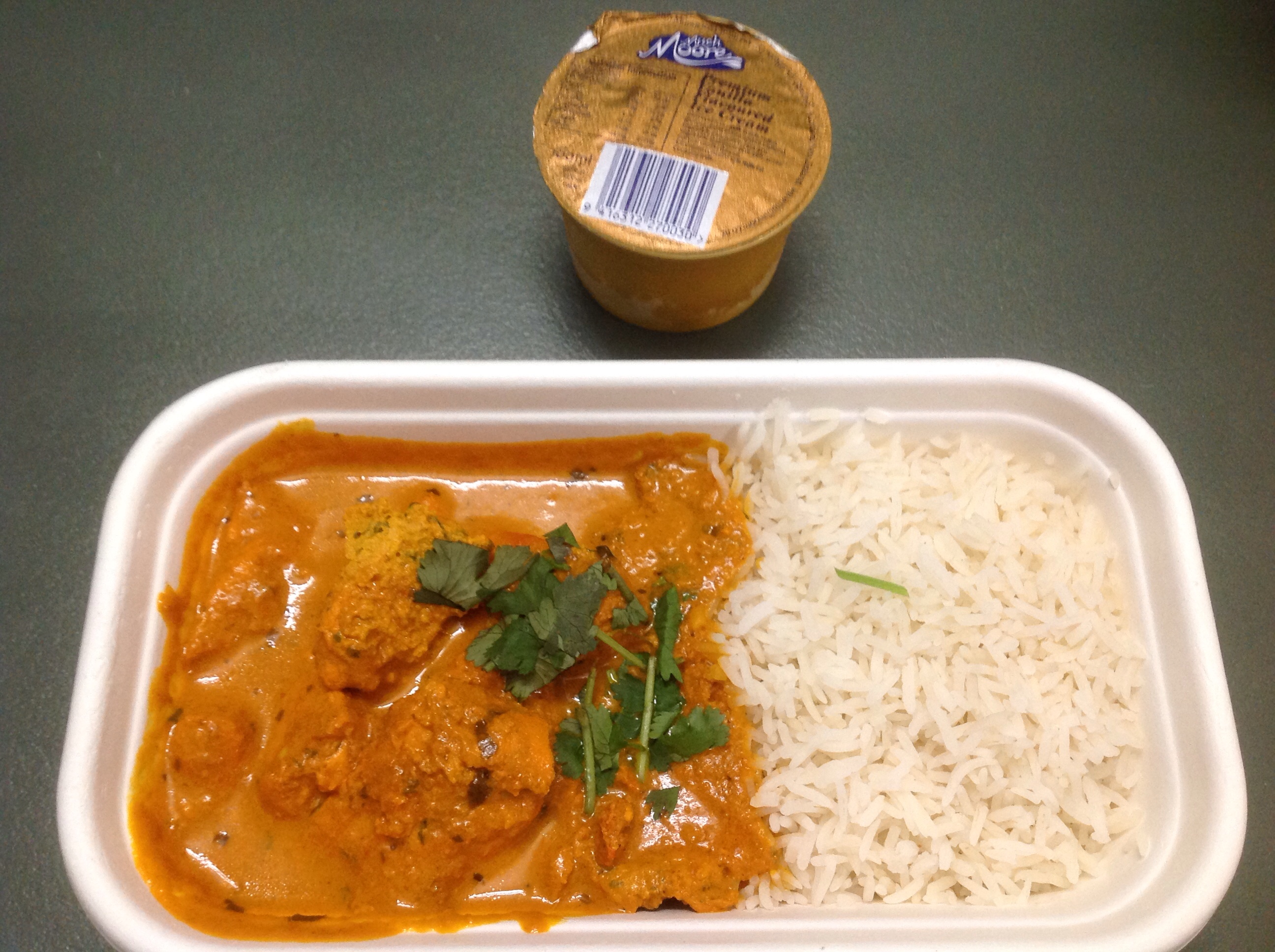 夜は、Butter Chicken with rice and chopped herb and Chef’s Dessert。たくさん鶏が入ってた。サラダが欲しい感じだったが、贅沢はいえない。