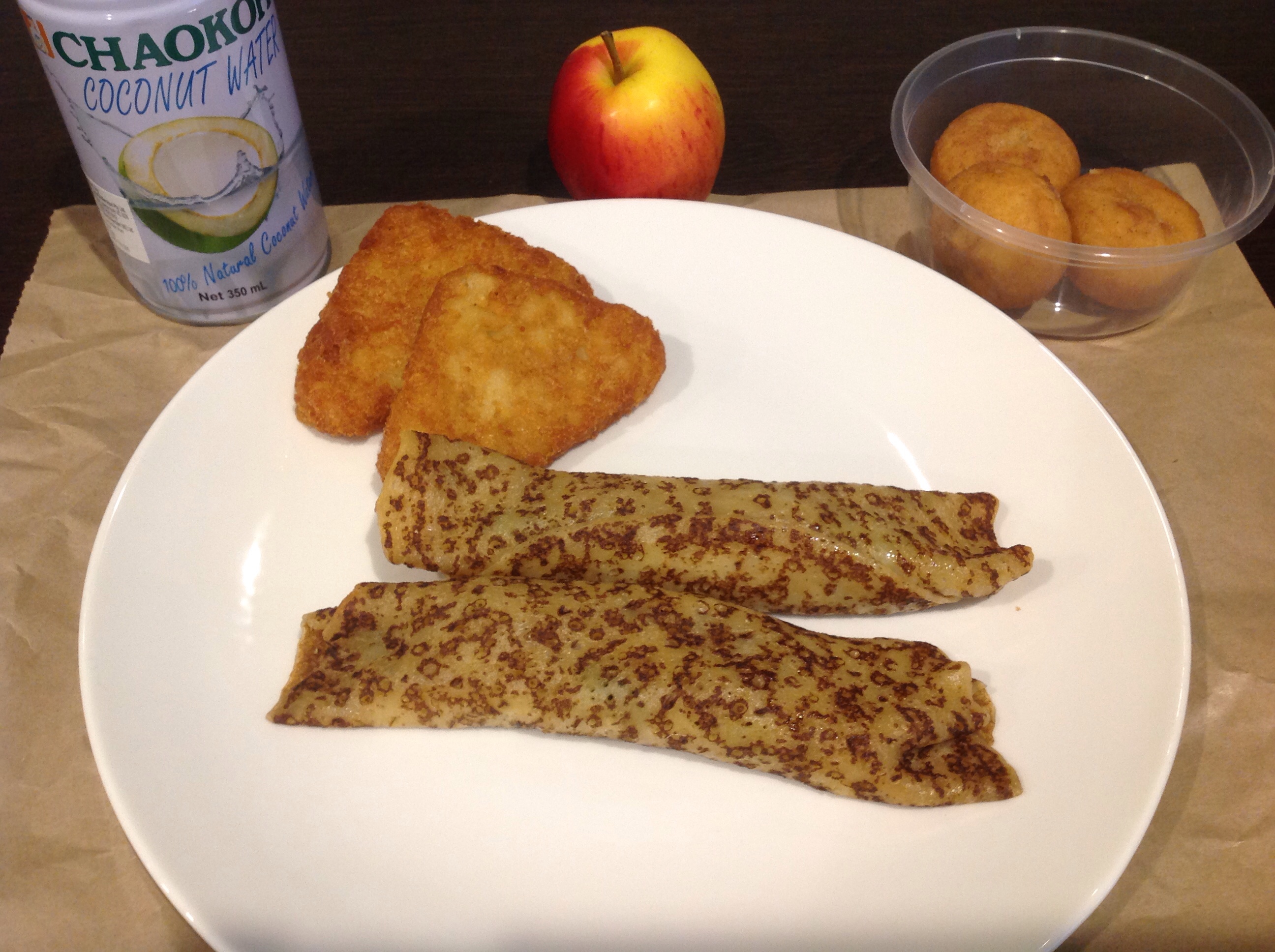 今朝は朝9時間PCR検査があるというので、朝食が到着してすぐ食べ始めた。朝食期待していたのだが、外のクレープかわいい、甘いってどういうこと?