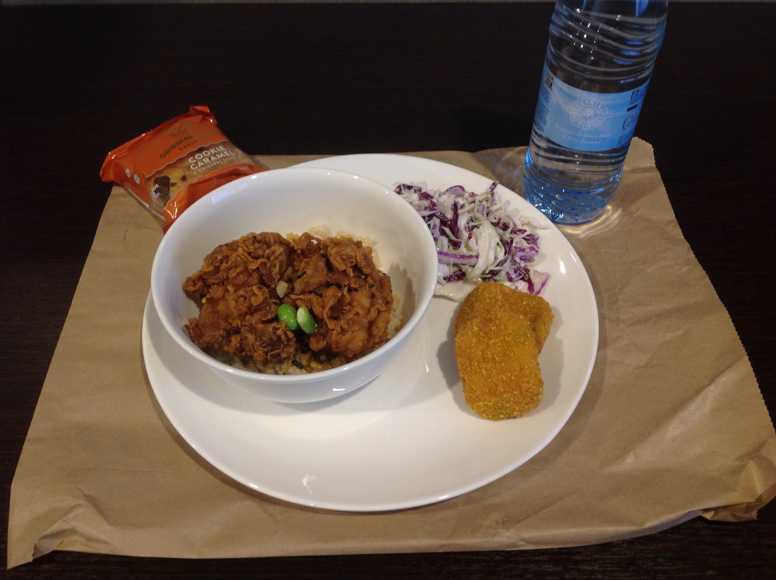今日のお昼のメニューは、どちらも、日本食っぽい。唐揚げ丼と、ポン酢のなんとか、、すごいね、日本料理!数年前には考えられなかった。